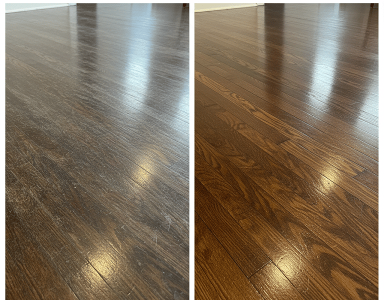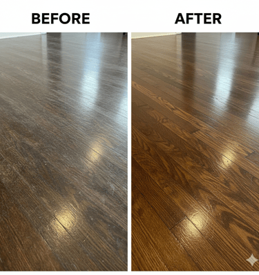 Our advanced sand-less hardwood floor refinishing process safely rejuvenates worn and scratched floors without creating dust or debris. This modern method enhances shine, improves durability, and extends the life of your existing hardwood finish—making it a cleaner, faster alternative to full sanding. We provide expert hardwood floor cleaning and buffing services to remove embedded dirt, grime, and dullness while restoring a smooth, polished appearance. If your floors have excessive buildup, we also offer professional wax removal and hardwood floor cleaning to eliminate residue and restore a natural, refreshed look.